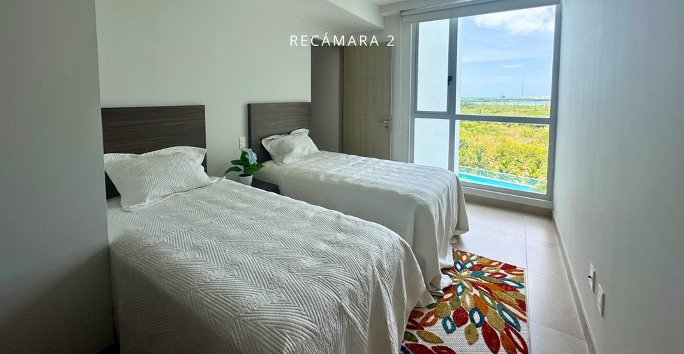 Departamento de dos recámaras en venta en Torre Cartagena, Malecón Américas; con una ubicación privilegiada sobre Av. Bonampak a 2 min del km 0.